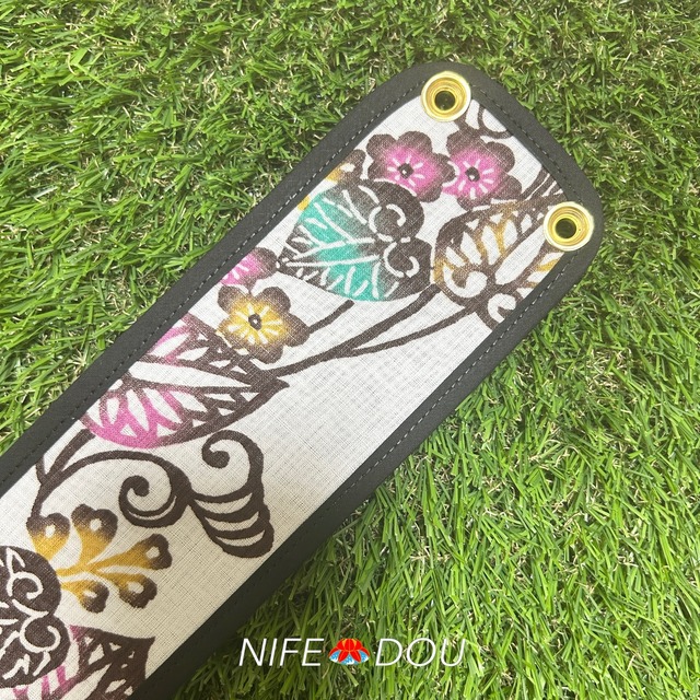 【素材】綿、革、プラスチック 【サイズ】(縦)最短73センチ、最長125センチ (横)5.5センチ ※平置きでの寸法 ※ハンドメイド品の為、多少の誤差がある場合が御座います。ご理解ください。 ※既製品のような完璧さはありませんが、手仕事のあたたかさとして受け止めて頂ければ幸いです。 【色味について】 商品写真はできる限り実物の色に近づけるよう徹底しておりますが、 お使いのモニター設定、お部屋の照明等により実際の商品と色味が異なる場合がございます。 こちらはどうしても防ぎようがないため、お色味に関する返品返金及び再送の対応は一切受け付けかねます。 ご了承いただいた方のみご購入下さいm(_ _)m 【発送、送料について】 ・クリックポスト¥185「郵便受けへお届け」 (船便→陸便) 追跡番号あり、お届けまで4日〜1週間程度 ※沖縄から船便→陸便のため、台風の影響等で船便がでない場合はお届けまで時間かかる場合もございます。 ・レターパックライト¥430「郵便受けへお届け」 (空輸)追跡番号あり、お届けまで2日〜4日 ・レターパックプラス¥600「対面でお届け」 (空輸)追跡番号あり、お届けまで2日〜4日 複数購入の場合、発送方法、送料が変更になる場合があります。 【柄について】 当店の商品は、柄の入り方が、一枚一枚異なります。自分だけのオリジナル商品としてお楽しみ頂けると幸いです。 商品画像の柄の入り方は《イメージ》となりますので、予めご了承ください。 《商品は【店頭・他のネットショップでも販売している】ため、売り切れの際はご容赦下さいませm(__)m》