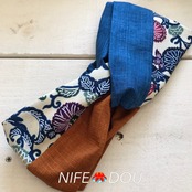【クロスターバン】2色/白紅型柄×オレンジ×青クロスターバン/沖縄クロスターバン