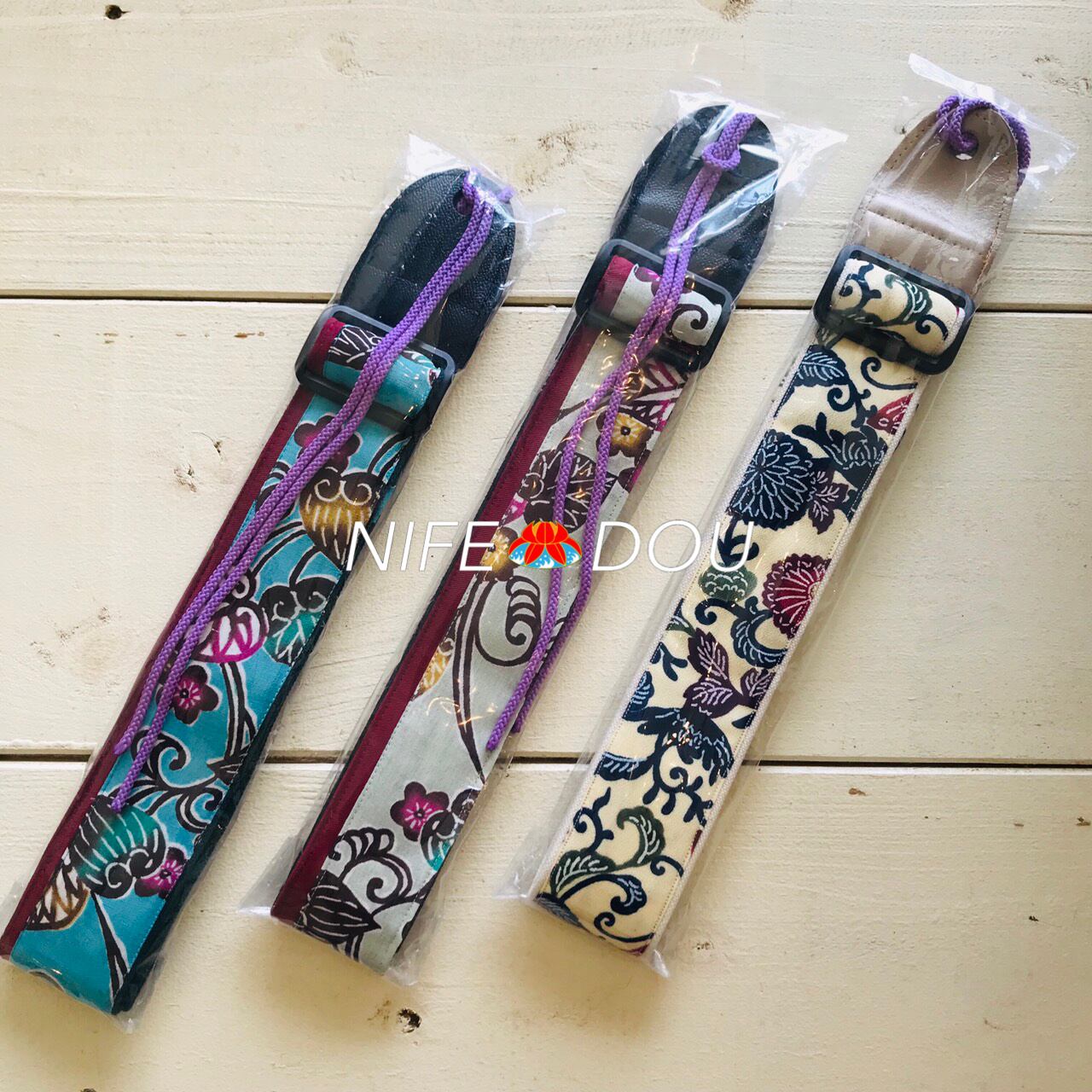 【三線ストラップ】【カラフル紅型薄緑×赤ライン】【三線ベルト】