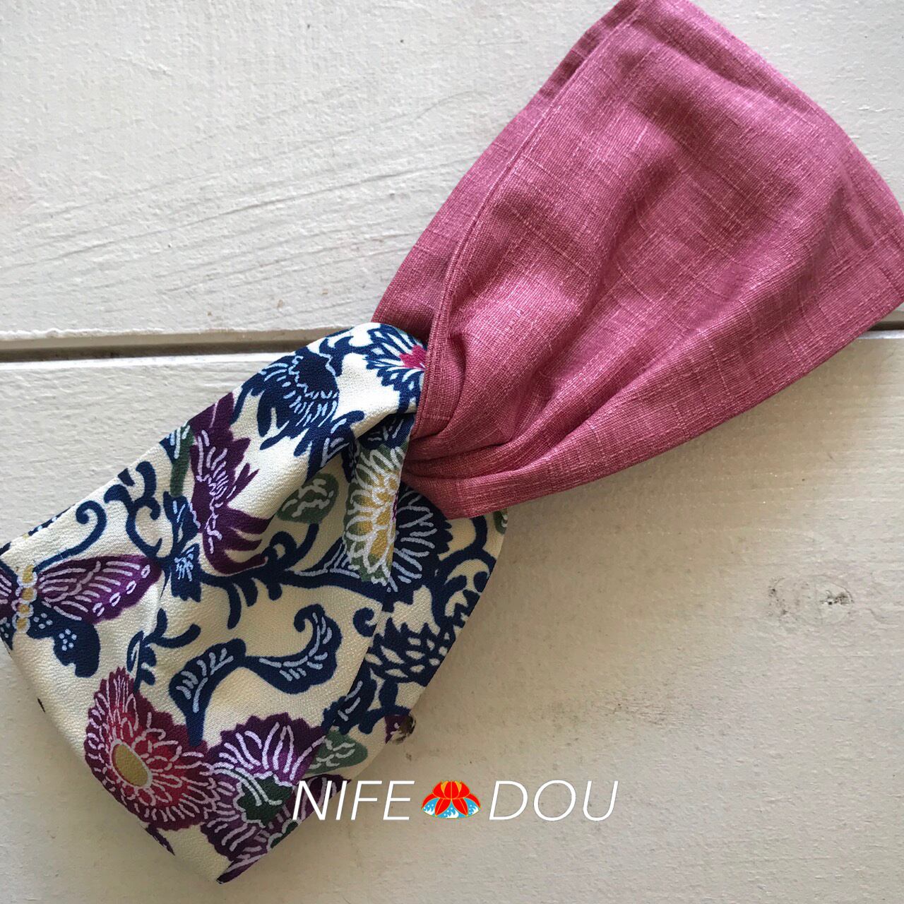 【クロスターバン】白紅型柄×ピンク/紅型柄クロスターバン/沖縄クロスターバン