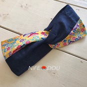 【紅型柄クロスターバン】綿黄紅型柄×紺クロスターバン/沖縄クロスターバン