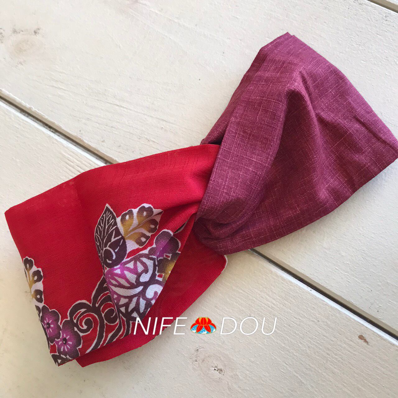 【紅型柄クロスターバン】赤紅型柄×赤クロスターバン/沖縄クロスターバン