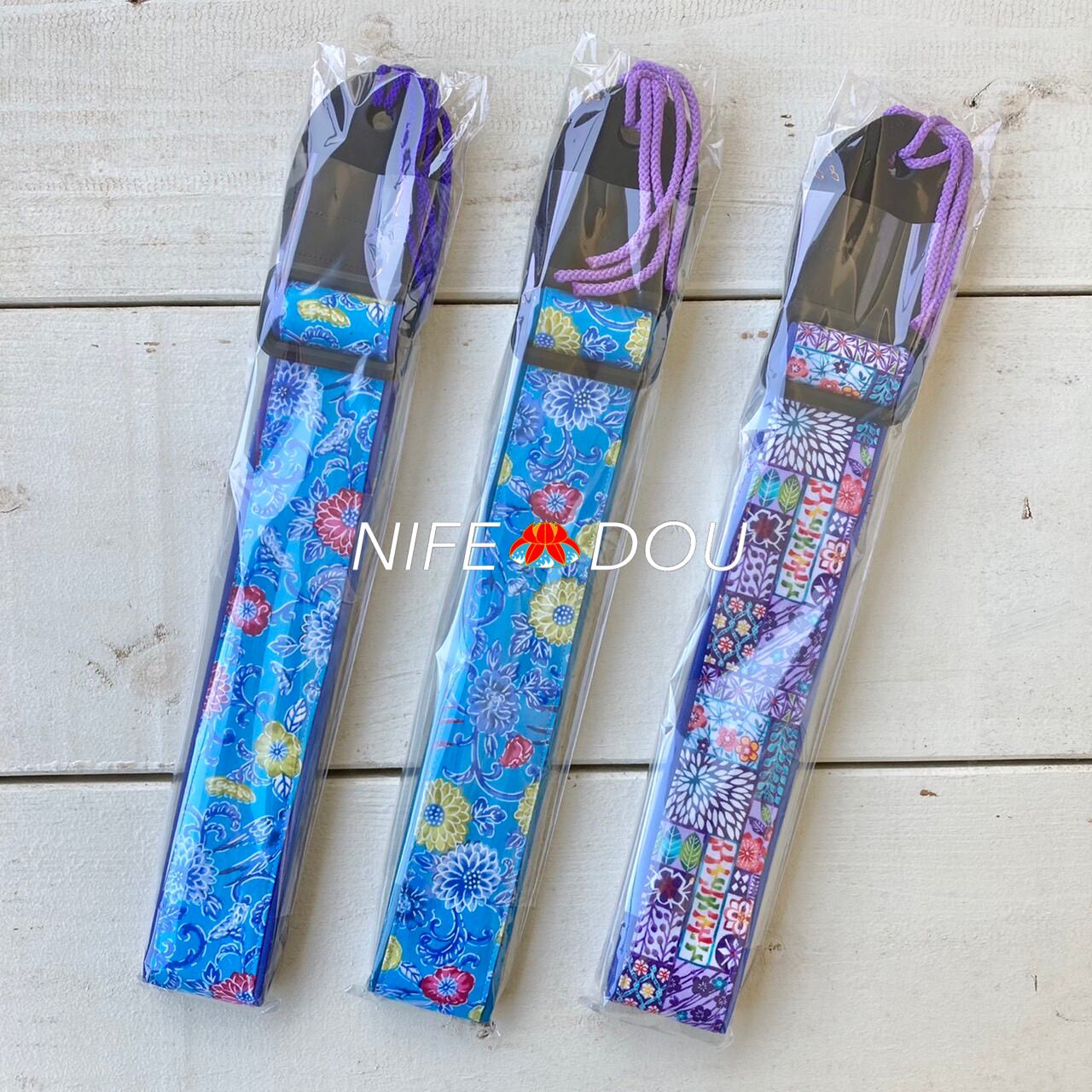 【三線ストラップ】【青緑地×青紅型柄×黒】【三線ベルト】