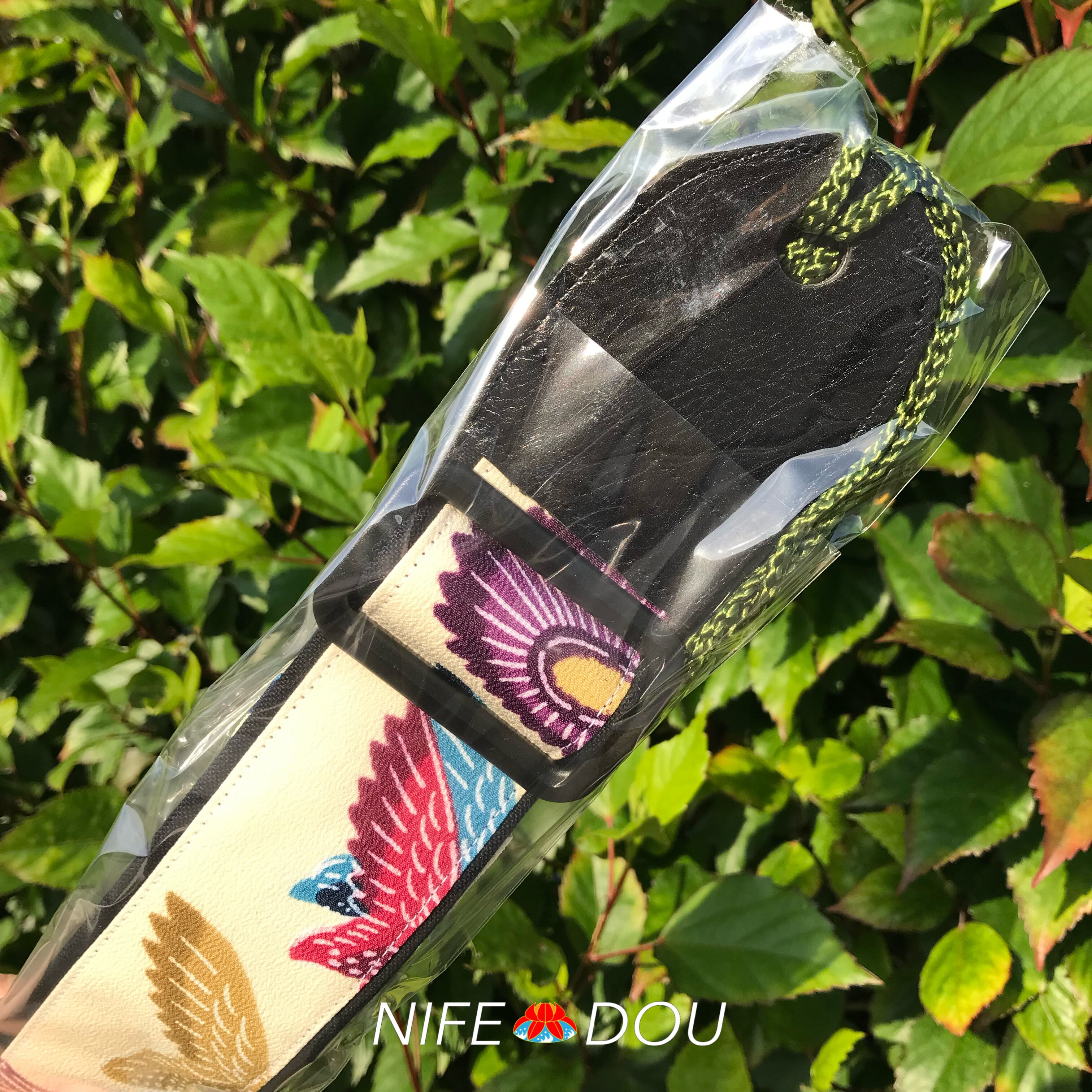【三線ストラップ】【黒地×紅型柄×黒】【三線ベルト】