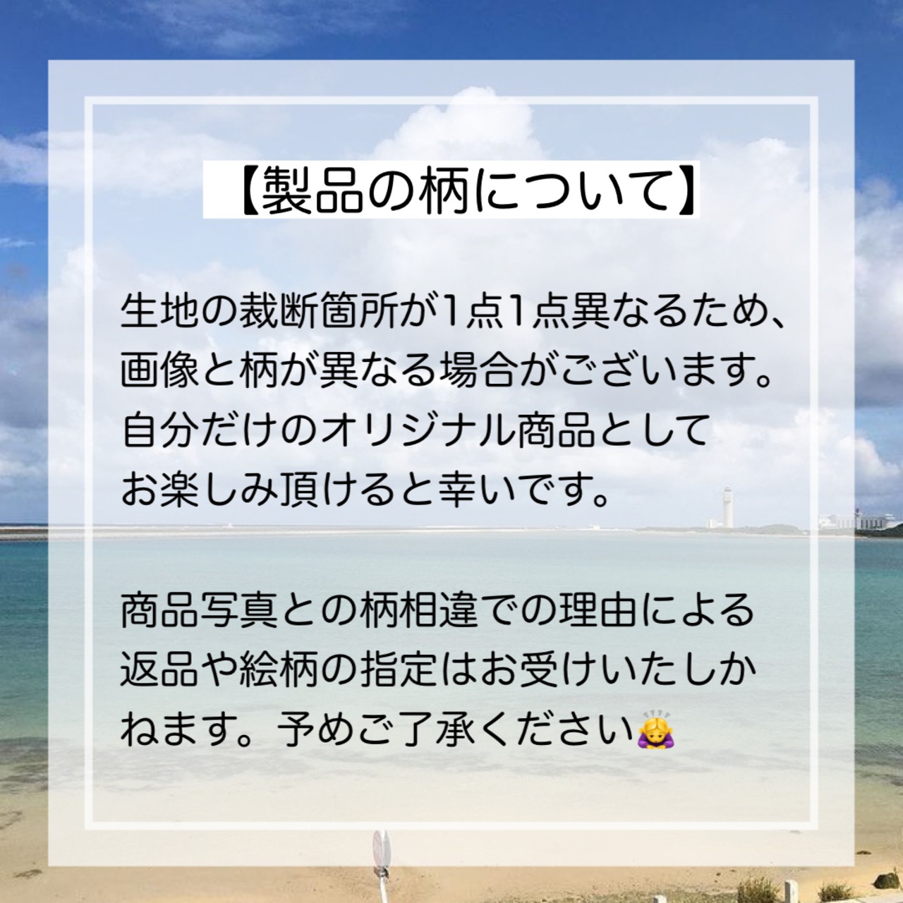 当店の商品は、柄の入り方が、一枚一枚異なります。自分だけのオリジナル商品としてお楽しみ頂けると幸いです。