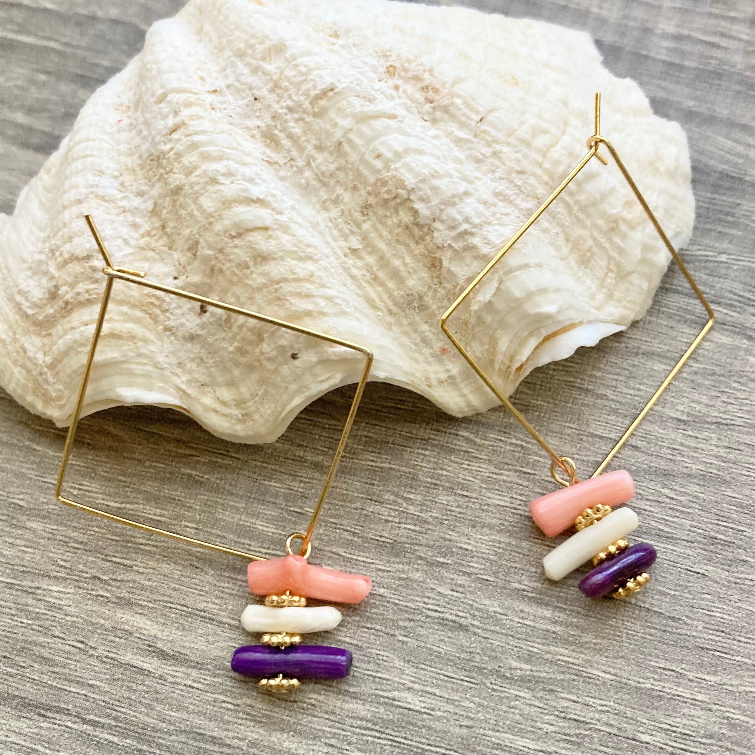 【カラーサンゴピアス】3㎝スクエアピアス